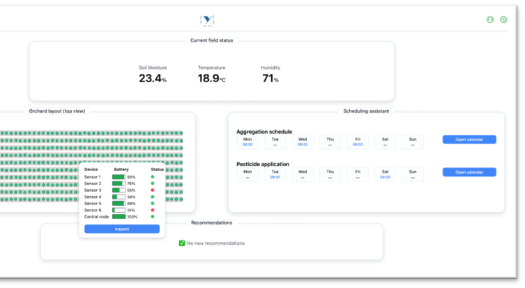 Low-cost sensors IoT sensors for soil moisture, temperature tracking and wind conditions, capable of withstanding harsh environmental conditions.